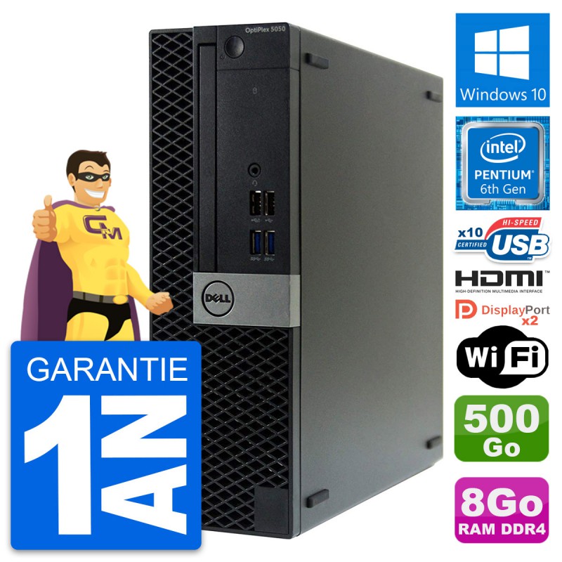 PC Dell OptiPlex 5050 SFF - Intel Pentium Dual-Core G4400 3.3 Ghz (3 Mo) - 8 Go DDR4 - Disque Dur 3,5" 500 Go - Clef Wifi USB - HDMI - Windows 10 - Garantie 1 an.