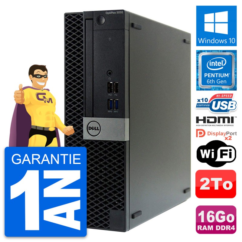 PC Dell OptiPlex 5050 SFF Pentium G4400 RAM 16Go Disque 2To HDMI Windows 10 Wifi