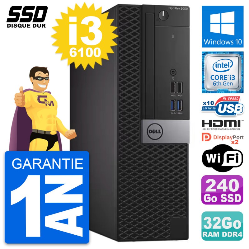 PC Dell OptiPlex 5050 SFF Intel i3-6100 RAM 32Go SSD 240Go HDMI Windows 10 Wifi