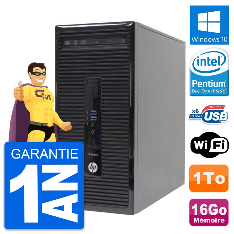 PC Tour HP ProDesk 400 G2 MT - Intel Pentium Dual-Core G3220 3.0 Ghz (3 Mo) - 16 Go DDR3 - Disque Dur 3,5" 1 To - Graveur DVD - Clef Wifi USB - Windows 10 - Garantie 1 an.