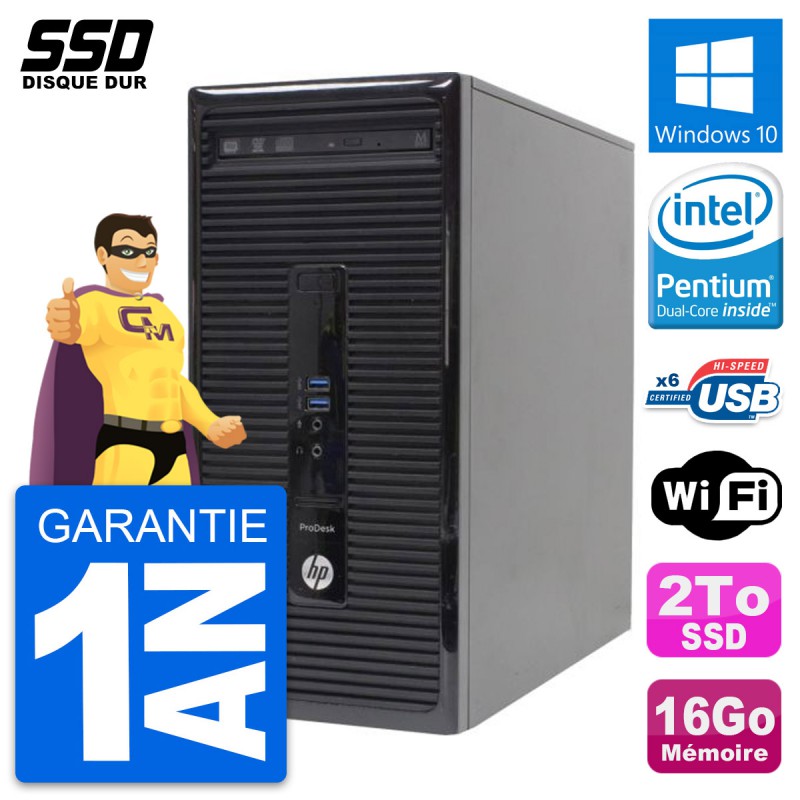 PC Tour HP ProDesk 400 G2 MT Pentium G3220 RAM 16Go SSD 2To Windows 10 Wifi