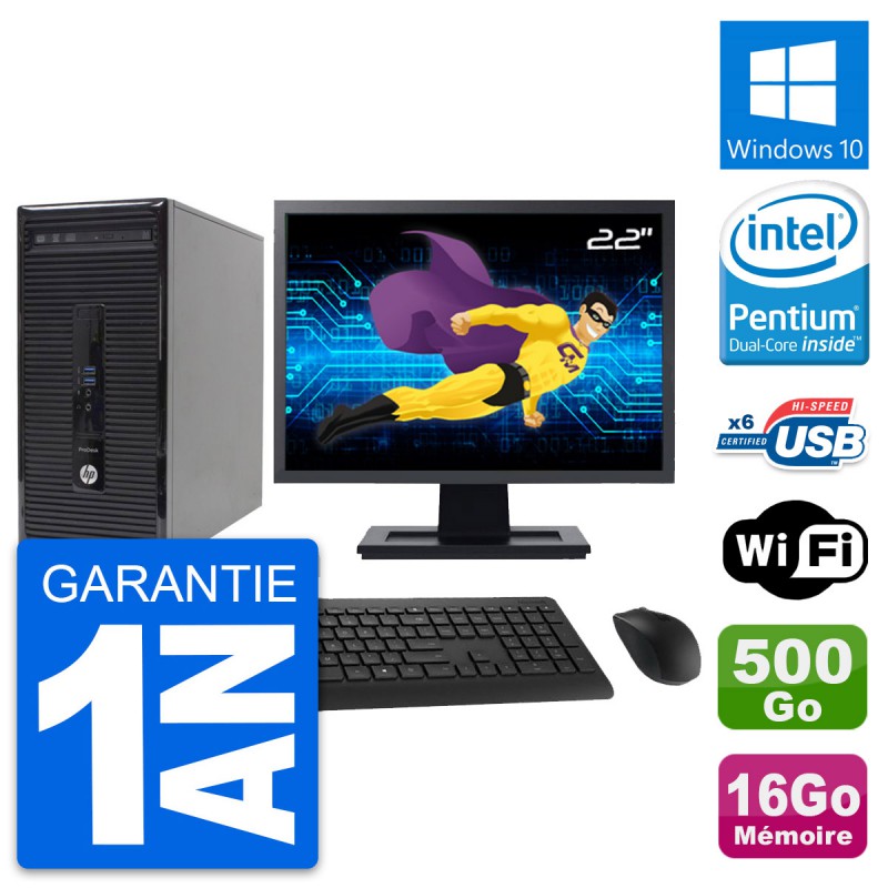 PC Tour HP ProDesk 400 G2 MT - Intel Pentium Dual-Core G3220 3.0 Ghz (3 Mo) - 16 Go DDR3 - Disque Dur 3,5" 500 Go - Graveur DVD - Clef Wifi USB - Windows 10 - Livré avec Ecran 22" + clavier + souris (Marques et modèles variables) - Garantie 1 an.