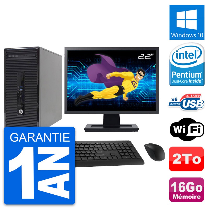 PC Tour HP ProDesk 400 G2 MT - Intel Pentium Dual-Core G3220 3.0 Ghz (3 Mo) - 16 Go DDR3 - Disque Dur 3,5" 2 To - Graveur DVD - Clef Wifi USB - Windows 10 - Livré avec Ecran 22" + clavier + souris (Marques et modèles variables) - Garantie 1 an.