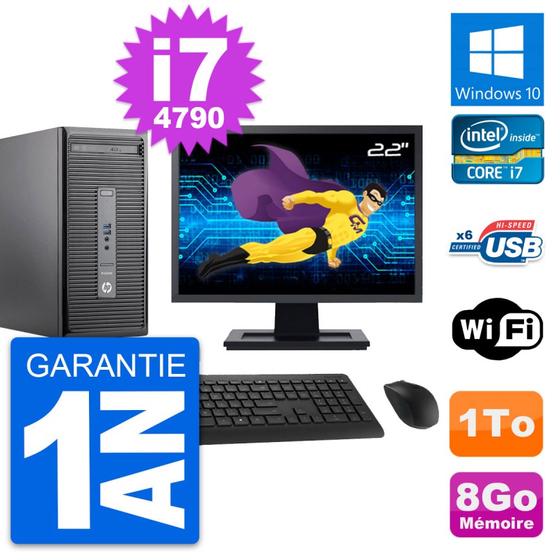 PC Tour HP 400 G2 MT Ecran 22" Intel i7-4790 RAM 8Go Disque 1To Windows 10 Wifi