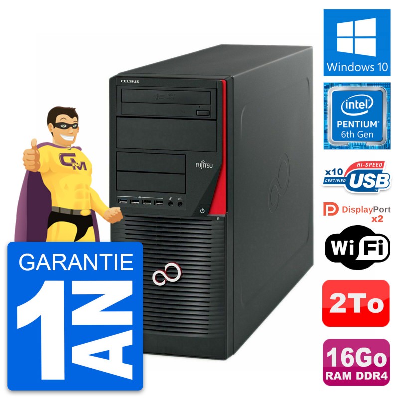 PC Tour Fujitsu Celsius W550n MT - Intel Pentium Dual-Core G4400 3.3 Ghz (3 Mo) - 16 Go DDR4 - Disque Dur 3,5" 2 To - Clef Wifi USB - Graveur DVD - Windows 10 - Garantie 1 an.