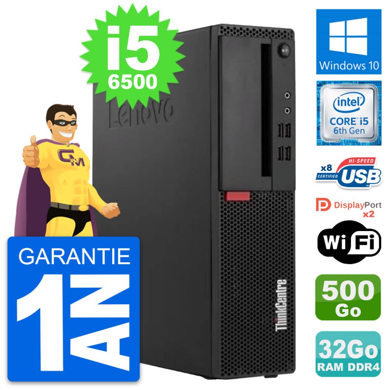 PC Lenovo ThinkCentre M910s SFF i5-6500 RAM 32Go Disque 500Go Windows 10 Wifi