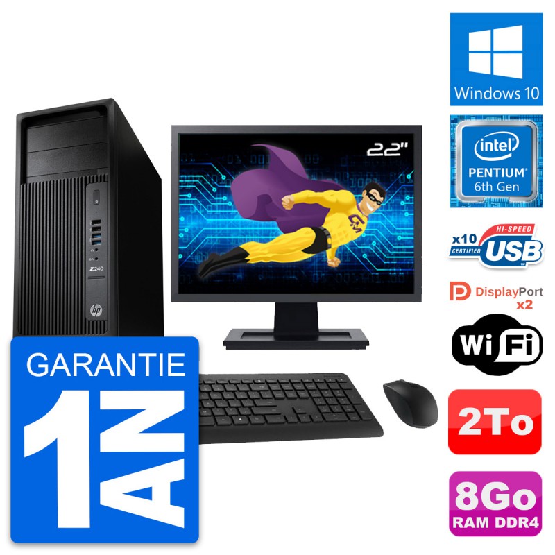 PC Tour HP WorkStation Z240 MT - Intel Pentium Dual-Core G4400 3.3 Ghz (3 Mo) - 8 Go DDR4 - Disque Dur 3,5" 2 To - Clef Wifi USB - Windows 10 - Livré avec Ecran 22" + clavier + souris (Marques et modèles variables) - Garantie 1 an.