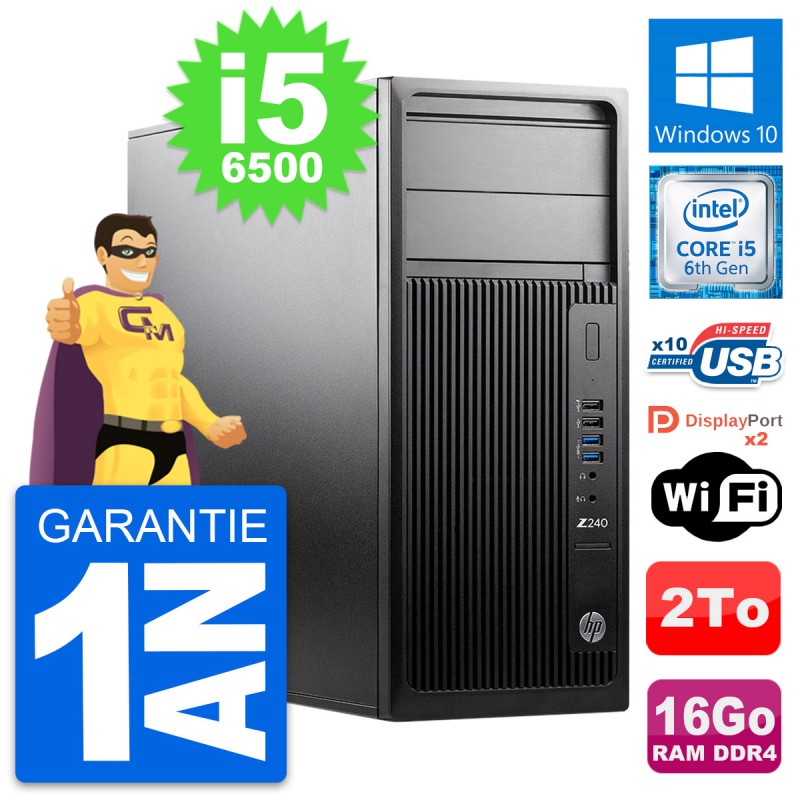 PC Tour HP WorkStation Z240 MT - Intel Core i5-6500 3.2 Ghz (6 Mo) - 16 Go DDR4 - Disque Dur 3,5" 2 To - Clef Wifi USB - Windows 10 - Garantie 1 an.