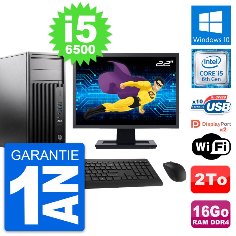 PC Tour HP WorkStation Z240 MT - Intel Core i5-6500 3.2 Ghz (6 Mo) - 16 Go DDR4 - Disque Dur 3,5" 2 To - Clef Wifi USB - Windows 10 - Livré avec Ecran 22" + clavier + souris (Marques et modèles variables) - Garantie 1 an.