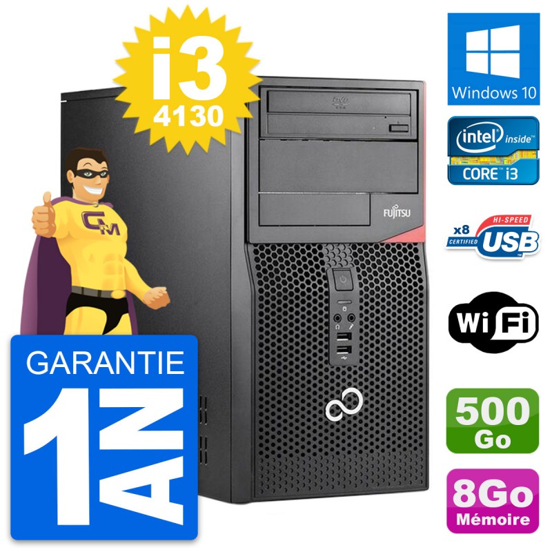 PC Tour Fujitsu Esprimo P520 - Intel Core i3-4130 3.4 Ghz (3 Mo) - 8 Go DDR3 - Disque Dur 3,5" 500 Go - Graveur DVD - Clef Wifi USB - Windows 10 - Garantie 1 an.