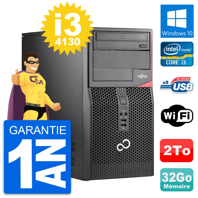 PC Tour Fujitsu Esprimo P520 Intel i3-4130 RAM 32Go Disque 2To Windows 10 Wifi