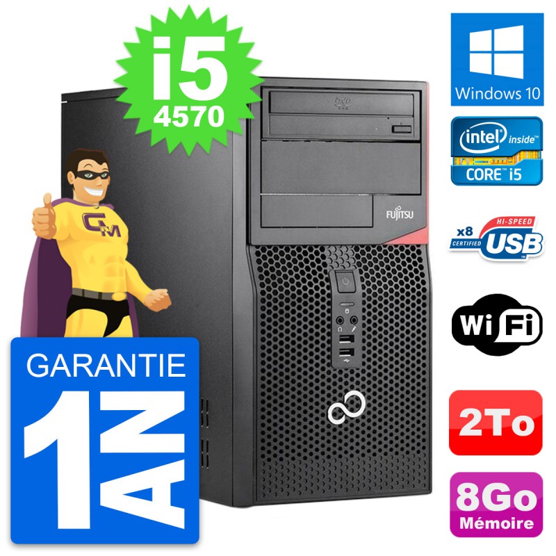 PC Tour Fujitsu Esprimo P520 - Intel Core i5-4570 3.2 Ghz (6 Mo) - 8 Go DDR3 - Disque Dur 3,5" 2 To - Graveur DVD - Clef Wifi USB - Windows 10 - Garantie 1 an.