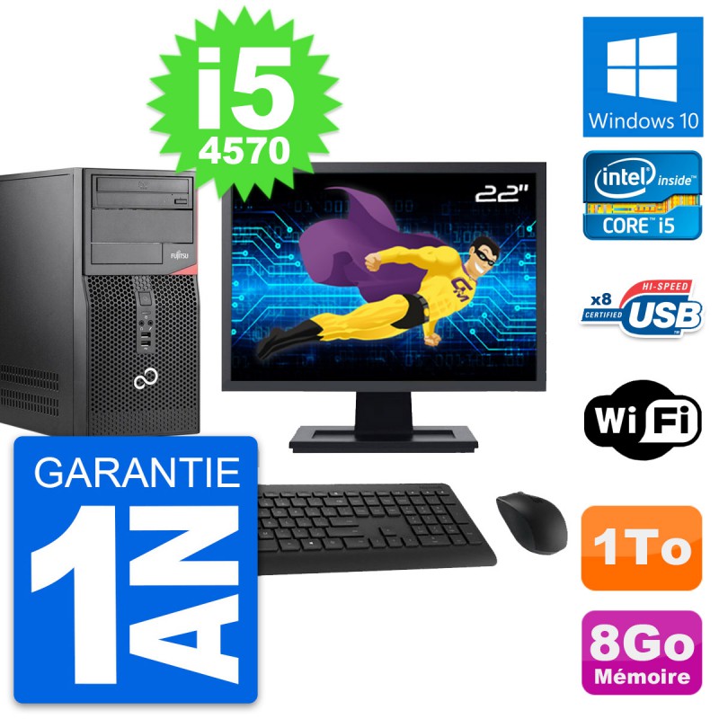 PC Tour Fujitsu P520 Ecran 22" Intel i5-4570 RAM 8Go Disque 1To Windows 10 Wifi