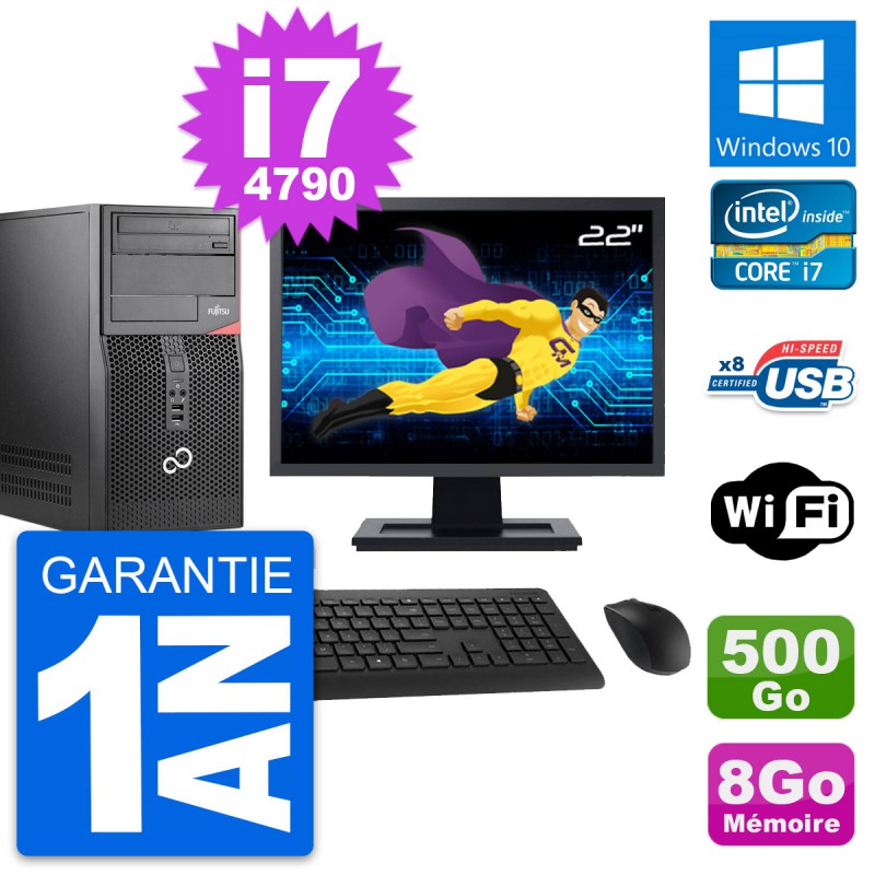 PC Tour Fujitsu P520 Ecran 22" Core i7-4790 RAM 8Go Disque 500Go Windows 10 Wifi