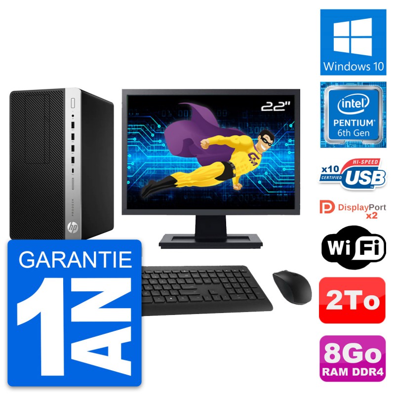 PC Tour HP ProDesk 600 G3 MT - Intel Pentium Dual-Core G4400 3.3 Ghz (3 Mo) - 8 Go DDR4 - Disque Dur 3,5" 2 To - Clef Wifi USB - Windows 10 - Livré avec Ecran 22" + clavier + souris (Marques et modèles variables) - Garantie 1 an.