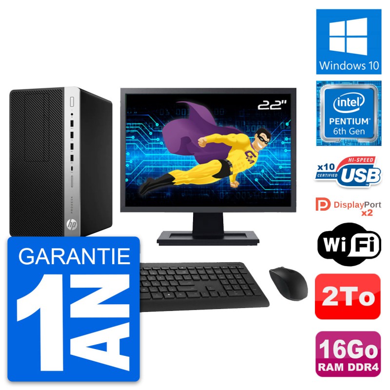 PC Tour HP ProDesk 600 G3 MT - Intel Pentium Dual-Core G4400 3.3 Ghz (3 Mo) - 16 Go DDR4 - Disque Dur 3,5" 2 To - Clef Wifi USB - Windows 10 - Livré avec Ecran 22" + clavier + souris (Marques et modèles variables) - Garantie 1 an.