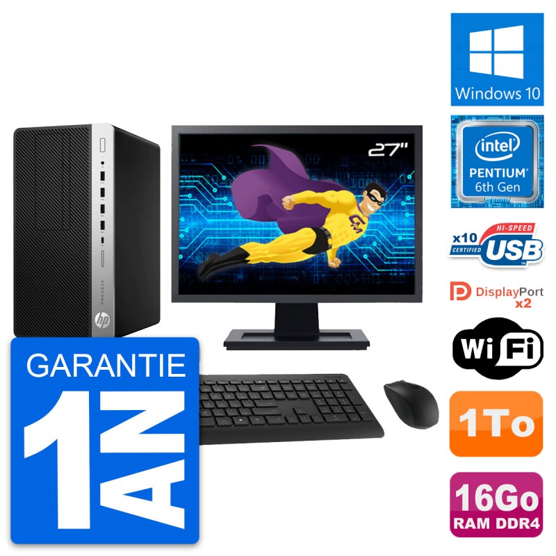 PC Tour HP ProDesk 600 G3 MT - Intel Pentium Dual-Core G4400 3.3 Ghz (3 Mo) - 16 Go DDR4 - Disque Dur 3,5" 1 To - Clef Wifi USB - Windows 10 - Livré avec Ecran 27" + clavier + souris (Marques et modèles variables) - Garantie 1 an.