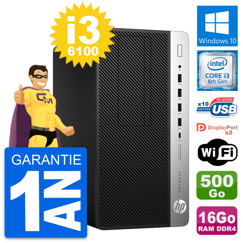 PC Tour HP ProDesk 600 G3 MT Intel i3-6100 RAM 16Go Disque 500Go Windows 10 Wifi