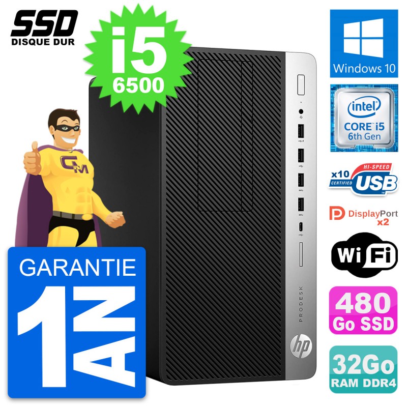 PC Tour HP ProDesk 600 G3 MT - Intel Core i5-6500 3.2 Ghz (6 Mo) - 32 Go DDR4 - SSD 480 Go - Clef Wifi USB - Windows 10 - Garantie 1 an.
