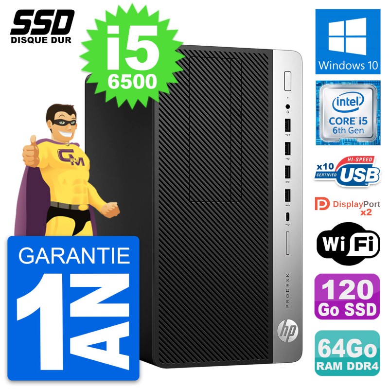 PC Tour HP ProDesk 600 G3 MT - Intel Core i5-6500 3.2 Ghz (6 Mo) - 64 Go DDR4 - SSD 120 Go - Clef Wifi USB - Windows 10 - Garantie 1 an.