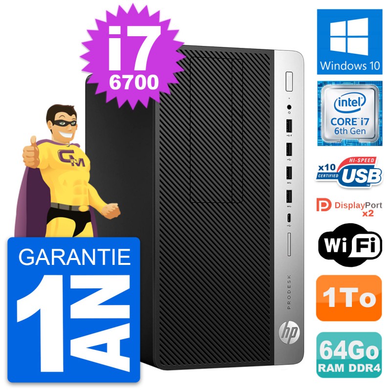 PC Tour HP ProDesk 600 G3 MT - Intel Core i7-6700 3.4 Ghz (8 Mo) - 64 Go DDR4 - Disque Dur 3,5" 1 To - Clef Wifi USB - Windows 10 - Garantie 1 an.