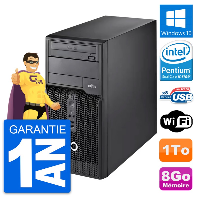 PC Tour Fujitsu Esprimo P510 MT - Intel Pentium Dual-Core G2020 2.9 Ghz (3 Mo) - 8 Go DDR3 - Disque Dur 3,5" 1 To - Graveur DVD - Clef Wifi USB - Windows 10 - Garantie 1 an.