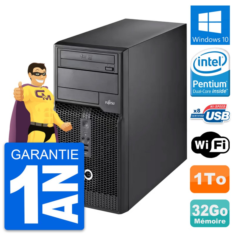 PC Tour Fujitsu Esprimo P510 MT - Intel Pentium Dual-Core G2020 2.9 Ghz (3 Mo) - 32 Go DDR3 - Disque Dur 3,5" 1 To - Graveur DVD - Clef Wifi USB - Windows 10 - Garantie 1 an.