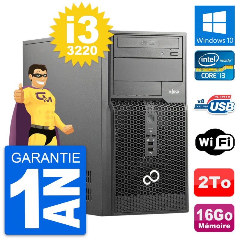 PC Tour Fujitsu Esprimo P510 MT Core i3-3220 RAM 16Go Disque 2To Windows 10 Wifi