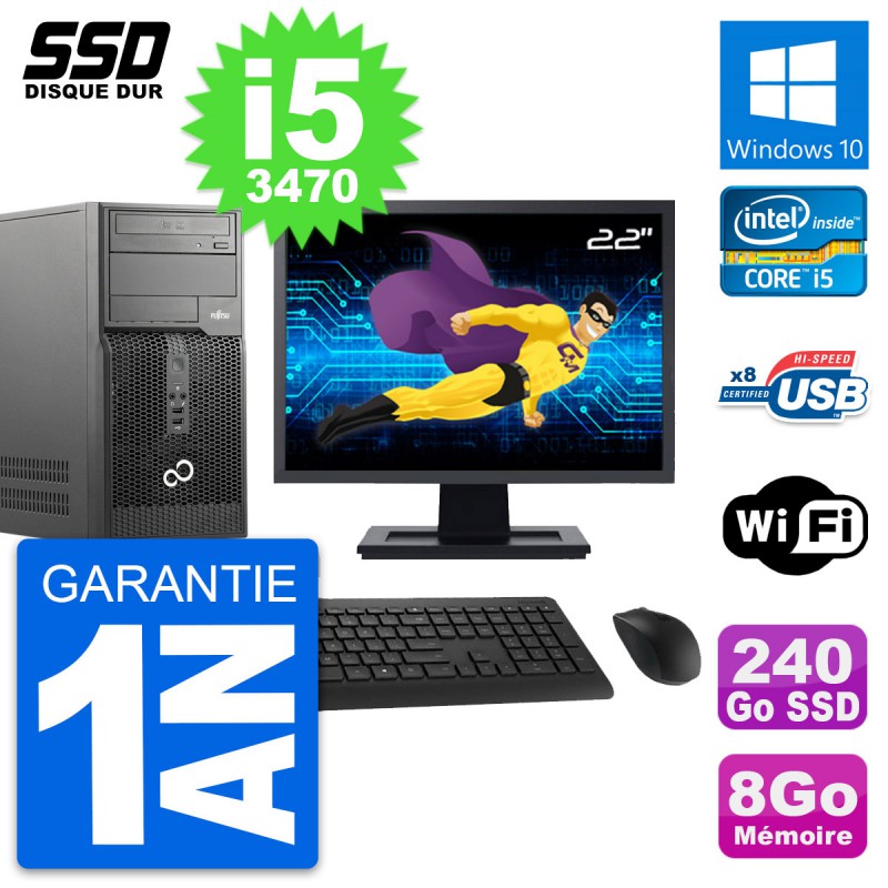 PC Tour Fujitsu P510 MT Ecran 22" Core i5-3470 RAM 8Go SSD 240Go Windows 10 Wifi