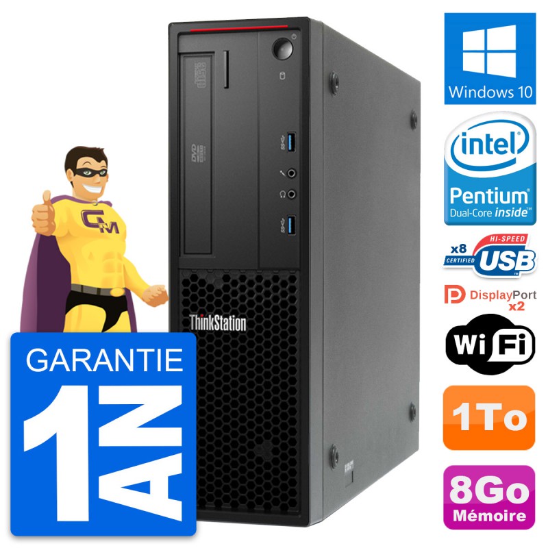 PC Lenovo ThinkStation P300 SFF - Intel Pentium Dual-Core G3220 3.0 Ghz (3 Mo) - 8 Go DDR3 - Disque Dur 3,5" 1 To - Clef Wifi USB - Graveur DVD - Windows 10 - Garantie 1 an.