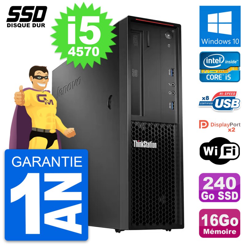 PC Lenovo ThinkStation P300 SFF - Intel Core i5-4570 3.2 Ghz (6 Mo) - 16 Go DDR3 - SSD 240 Go - Clef Wifi USB - Graveur DVD - Windows 10 - Garantie 1 an.
