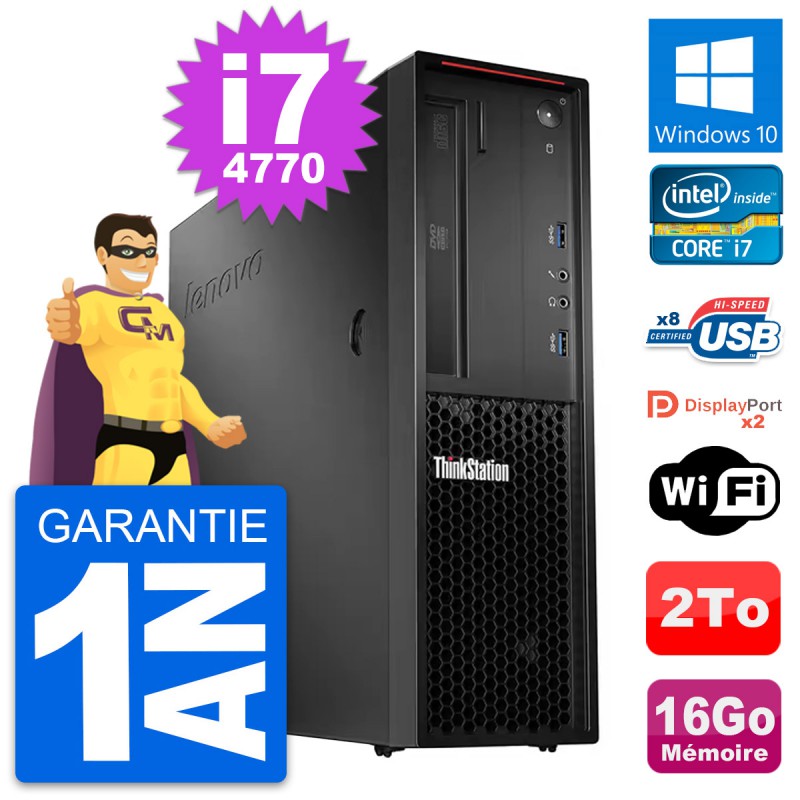 PC Lenovo ThinkStation P300 SFF - Intel Core i7-4770 3.4 Ghz (8 Mo) - 16 Go DDR3 - Disque Dur 3,5" 2 To - Clef Wifi USB - Graveur DVD - Windows 10 - Garantie 1 an.
