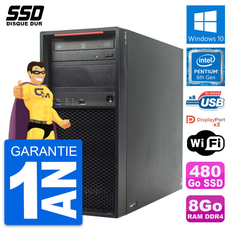 PC Tour Lenovo ThinkStation P320 MT - Intel Pentium Dual-Core G4400 3.3 Ghz (3 Mo) - 8 Go DDR4 - SSD 480 Go - Clef Wifi USB - Graveur DVD - Windows 10 - Garantie 1 an.