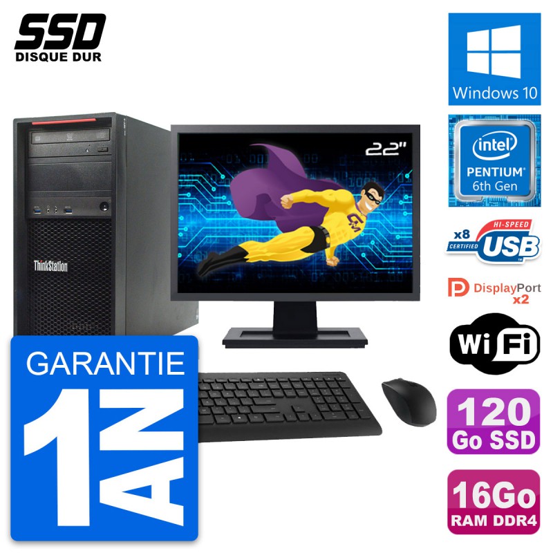 PC Tour Lenovo ThinkStation P320 MT - Intel Pentium Dual-Core G4400 3.3 Ghz (3 Mo) - 16 Go DDR4 - SSD 120 Go - Clef Wifi USB - Graveur DVD - Windows 10 - Livré avec Ecran 22" + clavier + souris (Marques et modèles variables) - Garantie 1 an.
