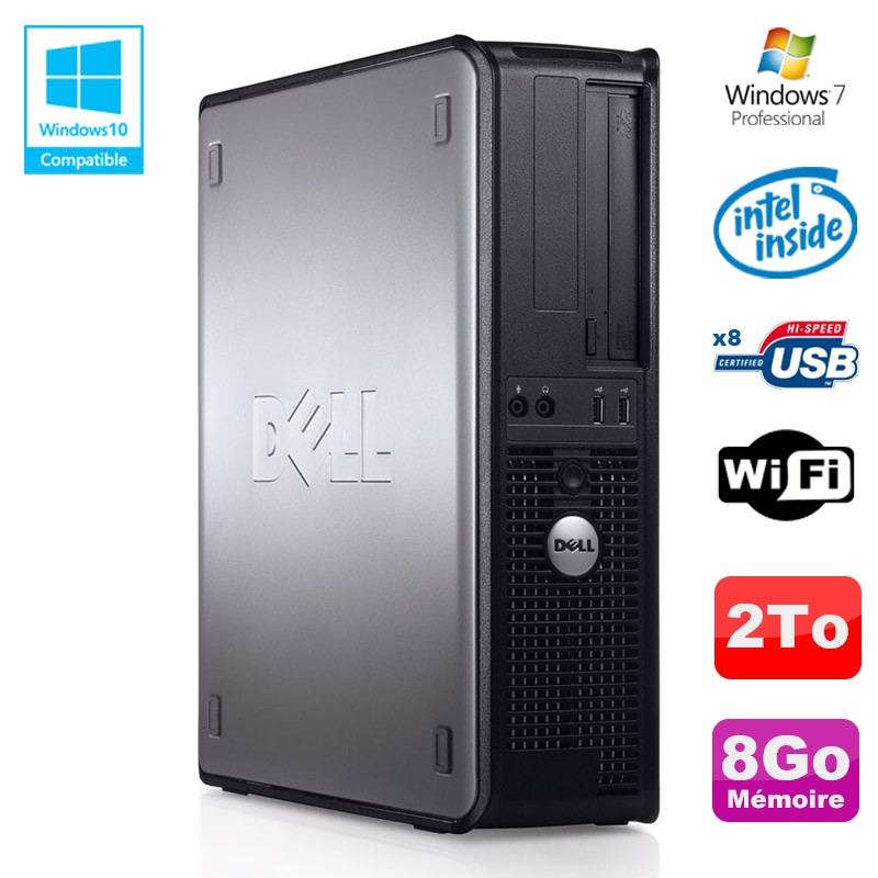 PC DELL Optiplex 780 DT Intel E8400 3Ghz 8Go Disque 2000Go WIFI Win 7 Pro