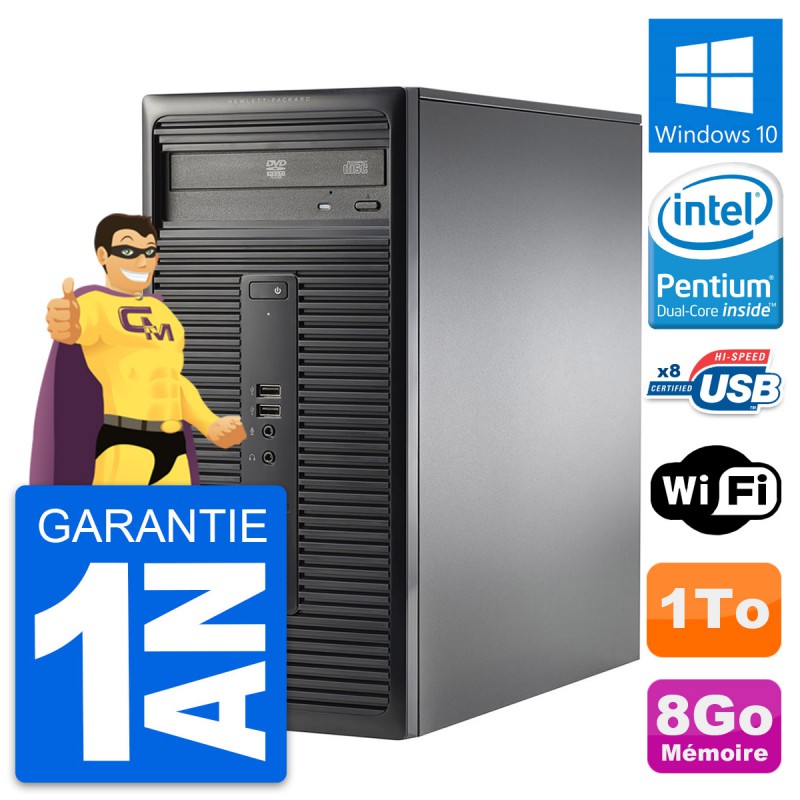 PC Tour HP 280 G1 MT - Intel Pentium Dual-Core G3220 3.0 Ghz (3 Mo) - 8 Go DDR3 - Disque Dur 3,5" 1 To - Clef Wifi USB - Graveur DVD - Windows 10 - Garantie 1 an.