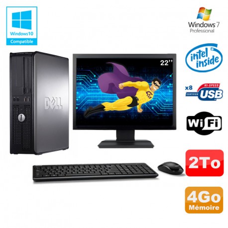 Lot PC DELL Optiplex 780 DT Intel E8400 3Ghz 4Go 2000Go WIFI Win 7 + Ecran 22"