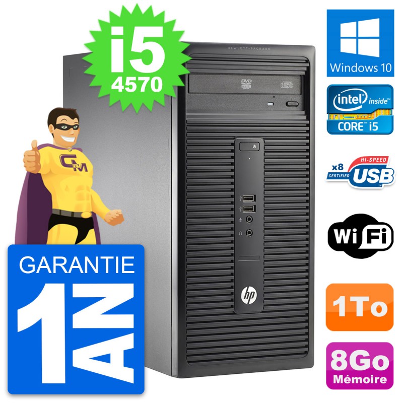 PC Tour HP 280 G1 MT - Intel Core i5-4570 3.2 Ghz (6 Mo) - 8 Go DDR3 - Disque Dur 3,5" 1 To - Clef Wifi USB - Graveur DVD - Windows 10 - Garantie 1 an.