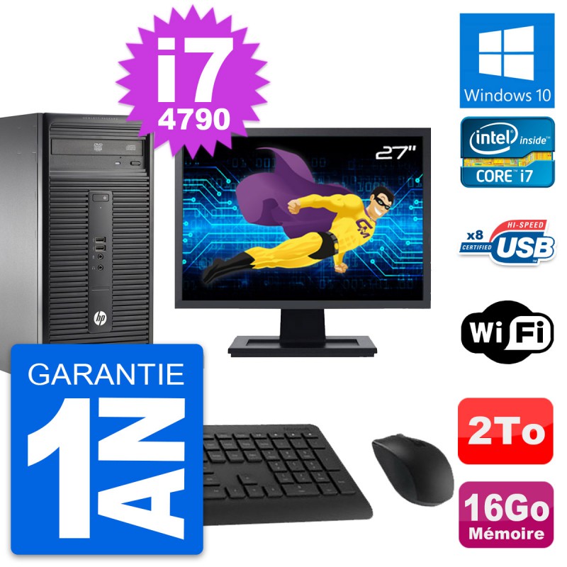 PC Tour HP 280 G1 MT - Intel Core i7-4790 3.6 Ghz (8 Mo) - 16 Go DDR3 - Disque Dur 3,5" 2 To - Clef Wifi USB - Graveur DVD - Windows 10 - Livré avec Ecran 27" + clavier + souris (Marques et modèles variables) - Garantie 1 an.
