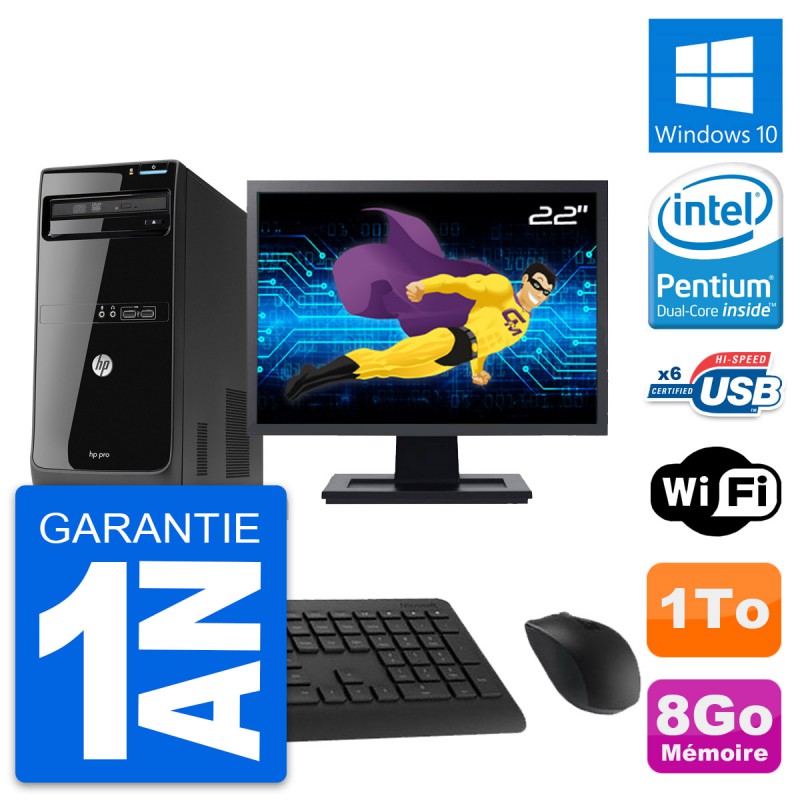 PC Tour HP Pro 3500 MT - Intel Pentium Dual-Core G2020 2.9 Ghz (3 Mo) - 8 Go DDR3 - Disque Dur 3,5" 1 To - Graveur DVD - Clef Wifi USB - Windows 10 - Livré avec Ecran 22" + clavier + souris (Marques et modèles variables) - Garantie 1 an.