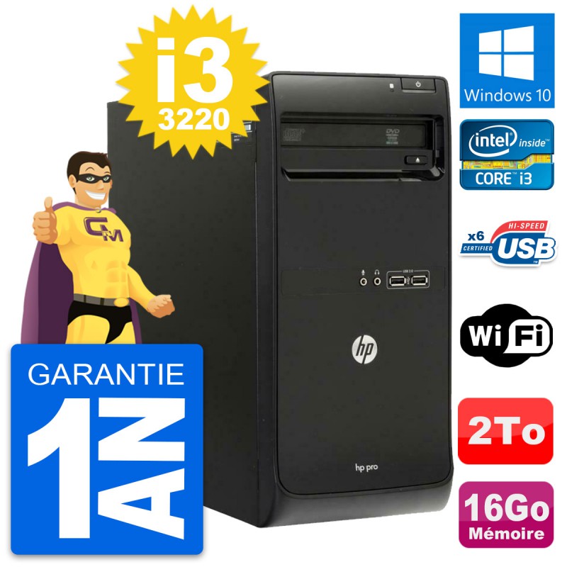 PC Tour HP Pro 3500 MT Intel Core i3-3220 RAM 16Go Disque 2To Windows 10 Wifi