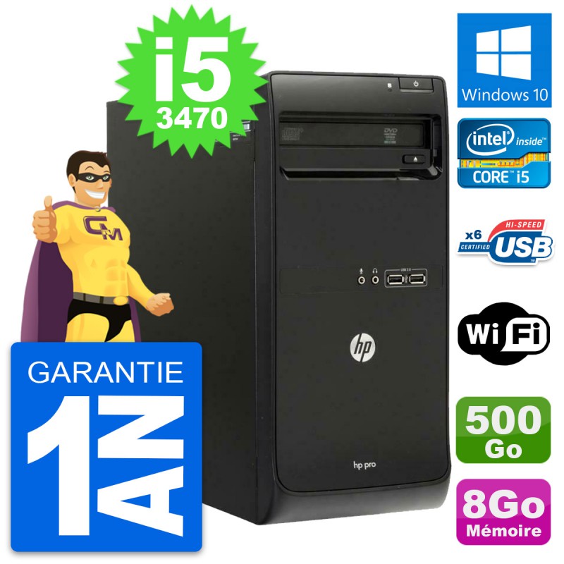 PC Tour HP Pro 3500 MT Intel Core i5-3470 RAM 8Go Disque 500Go Windows 10 Wifi
