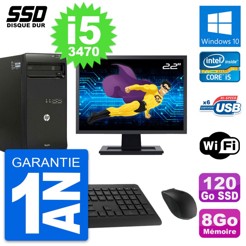 PC Tour HP Pro 3500 MT Ecran 22" Core i5-3470 RAM 8Go SSD 120Go Windows 10 Wifi