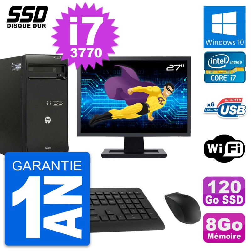 PC Tour HP Pro 3500 MT Ecran 27" Core i7-3770 RAM 8Go SSD 120Go Windows 10 Wifi