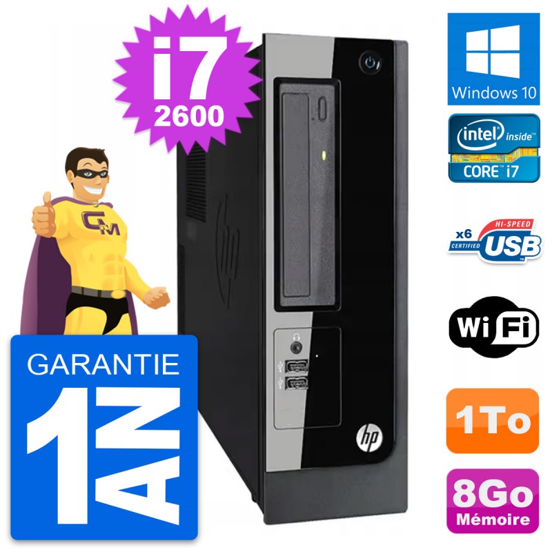 PC HP Pro 3300 SFF - Intel Core i7-2600 3.4 Ghz (8 Mo) - 8 Go DDR3 - Disque Dur 3,5" 1 To - Graveur DVD - Clef Wifi USB - Windows 10 - Garantie 1 an.