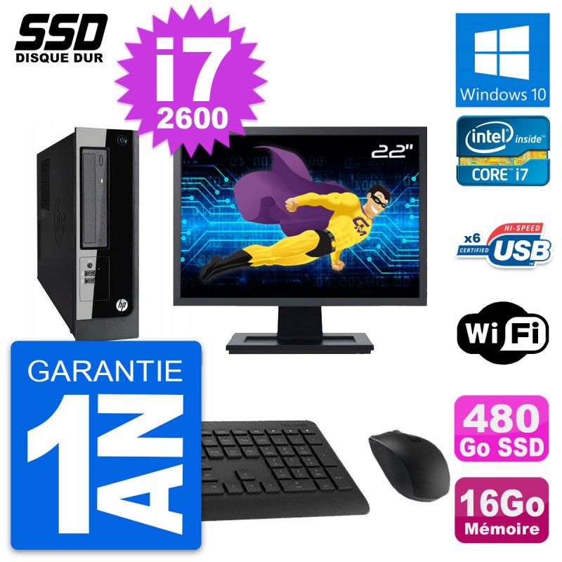 PC HP Pro 3300 SFF Ecran 22" Intel i7-2600 RAM 16Go SSD 480Go Windows 10 Wifi