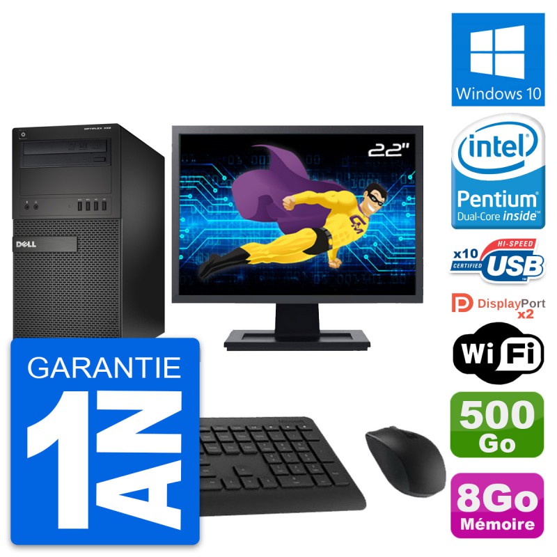 PC Tour Dell OptiPlex XE2 MT - Intel Pentium Dual-Core G3220 3.0 Ghz (3 Mo) - 8 Go DDR3 - Disque Dur 3,5" 500 Go - Graveur DVD - Clef Wifi USB - Windows 10 - Livré avec Ecran 22" + clavier + souris (Marques et modèles variables) - Garantie 1 an.