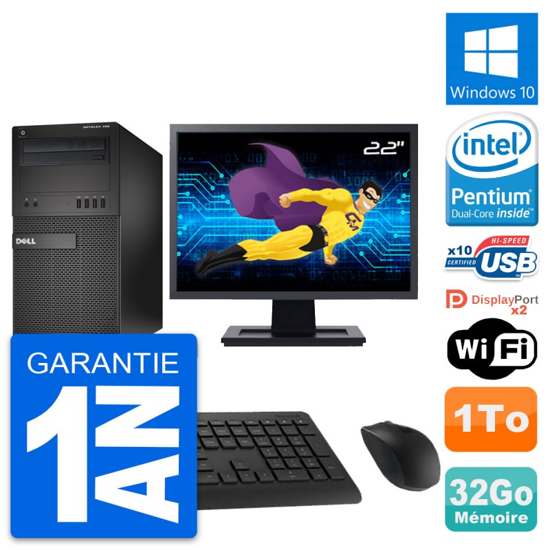 PC Tour Dell OptiPlex XE2 MT - Intel Pentium Dual-Core G3220 3.0 Ghz (3 Mo) - 32 Go DDR3 - Disque Dur 3,5" 1 To - Graveur DVD - Clef Wifi USB - Windows 10 - Livré avec Ecran 22" + clavier + souris (Marques et modèles variables) - Garantie 1 an.