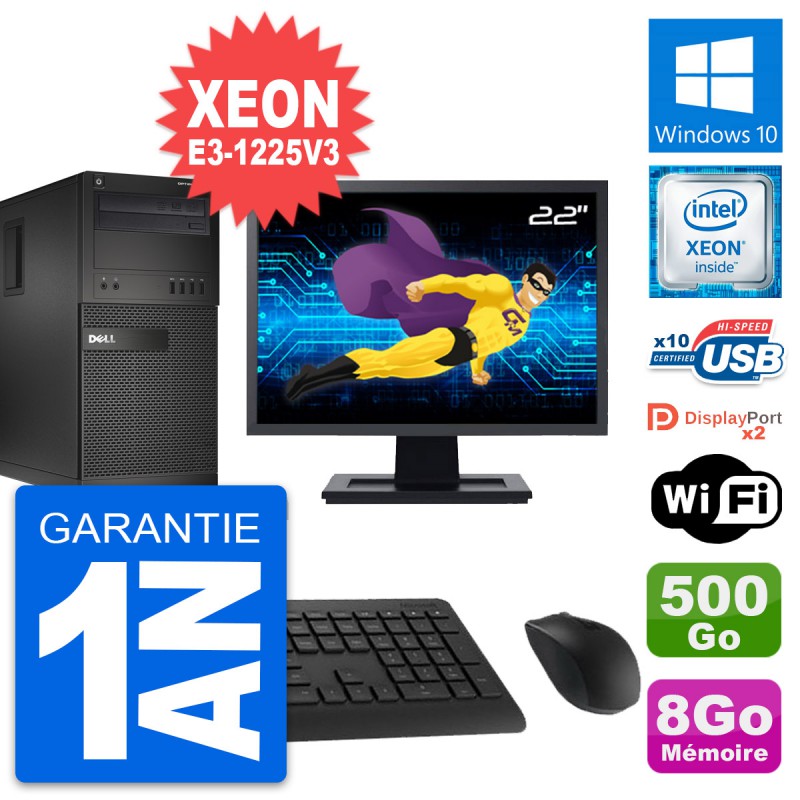 PC Tour Dell OptiPlex XE2 MT - Intel Xeon E3-1225 V3 3.2 Ghz (8 Mo) - 8 Go DDR3 - Disque Dur 3,5" 500 Go - Graveur DVD - Clef Wifi USB - Windows 10 - Livré avec Ecran 22" + clavier + souris (Marques et modèles variables) - Garantie 1 an.