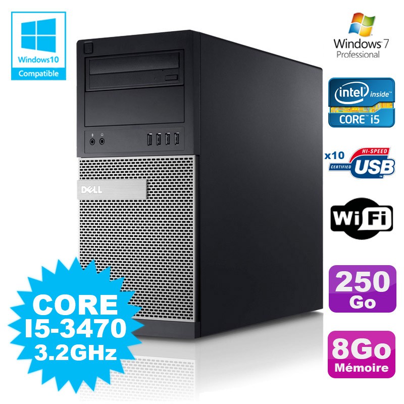 PC Tour Dell Optiplex 790 Intel I5-3470 3.2Ghz 8Go 250Go DVD WIFI Win 7